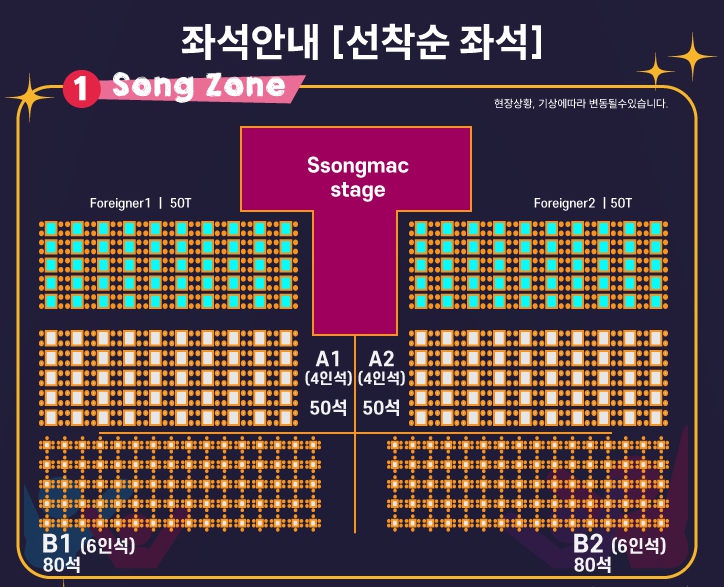 ※ 본 좌석은 미배정 좌석이며 현장 당일 팔찌 수령 후 선착순으로 원하시는 좌석에 착석합니다.