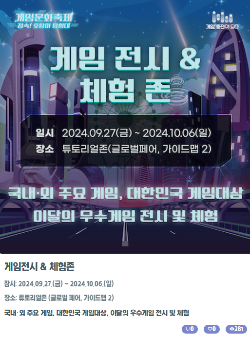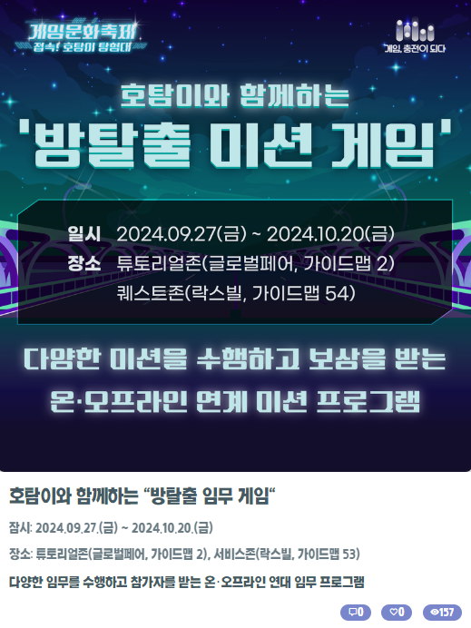 게임을 매개로 모든 세대가 소통할 수 있는 건강한 게임문화의 확산과 게임 향유 기회 확대를 위해 진행되는 축제이다. 호탐이 스토리텔링을 기반으로 한 미션게임, 전시 및 체험, 이스포츠 대회 등 관람객 누구나 함께 참여할 수 있는 다양한 현장 프로그램이 운영된다.