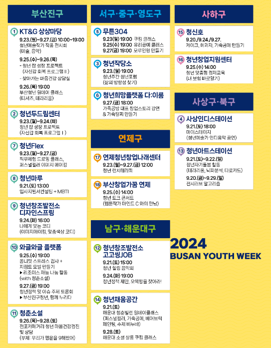 [부산청년주간] 프로그램 일정 및 입장료 안내