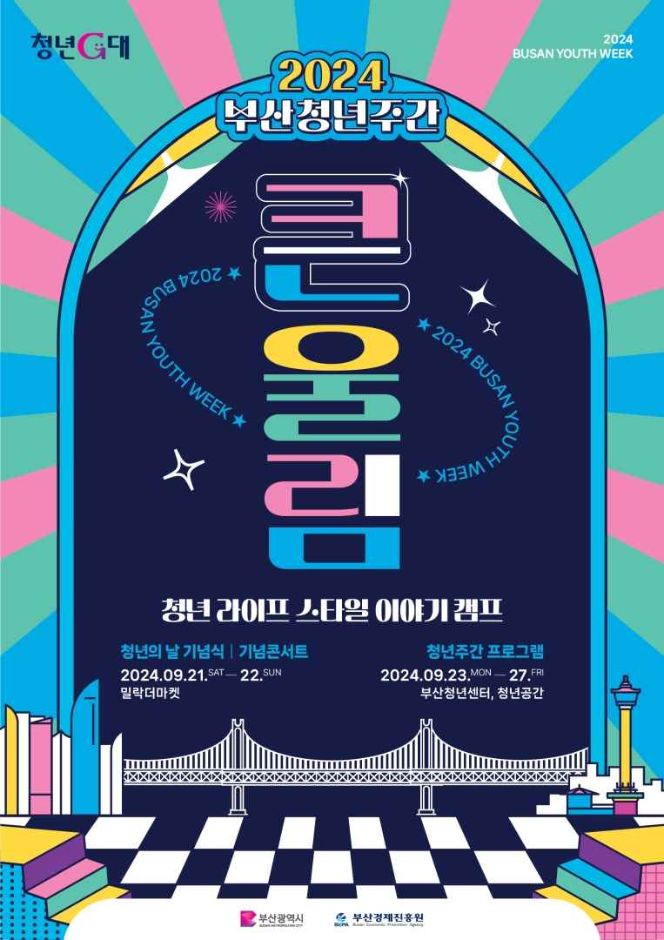 청년의 날을 맞아 부산 밀락더마켓에서 열리는 '2024 부산청년주간' 행사이다. 행사기간 동안에 청년들을 위한 다양한 프로그램이 구성되어 있다.