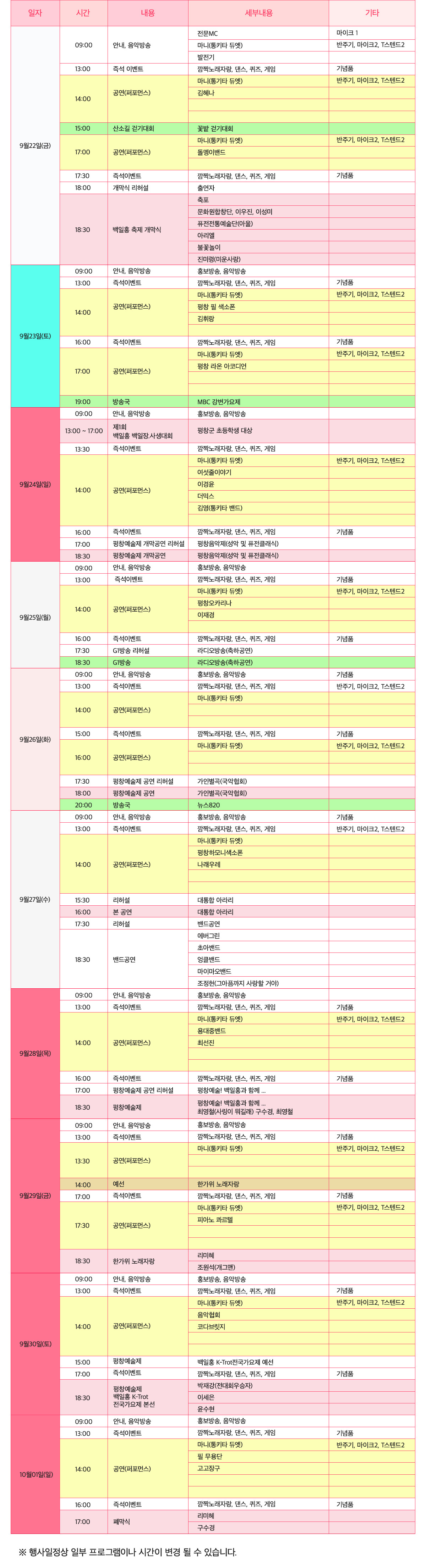 9월 축제 '평창백일홍축제' 프로그램 일정